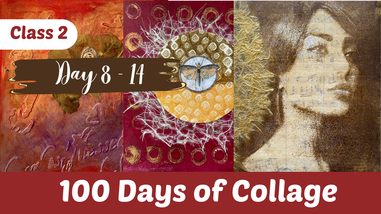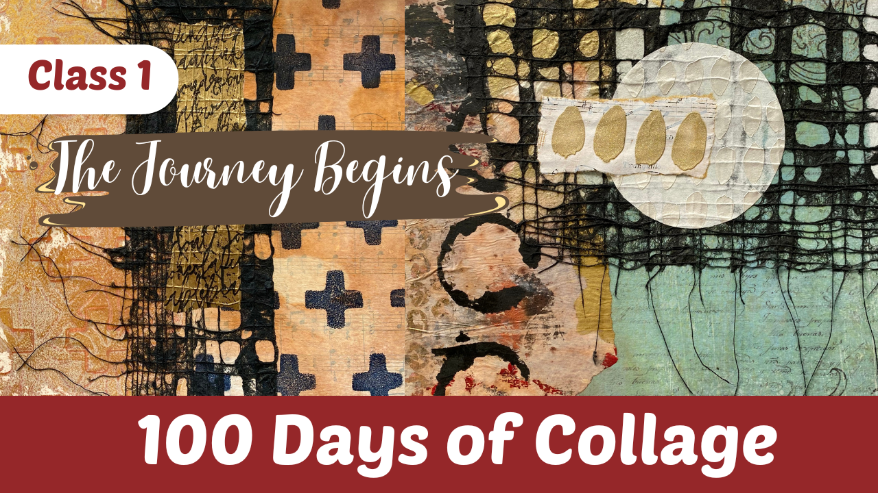 In this Mixed Media Art Class: 100 Days of Collage, we invite you on a transformative journey to ignite your creativity, enhance your artistic skills, and express your true self through the dynamic medium of mixed media collage. Each lesson will guide you to craft one-page collages within your art journal or chosen substrate, exploring an array of themes, prompts, and techniques that culminate in a rich and diverse body of work.